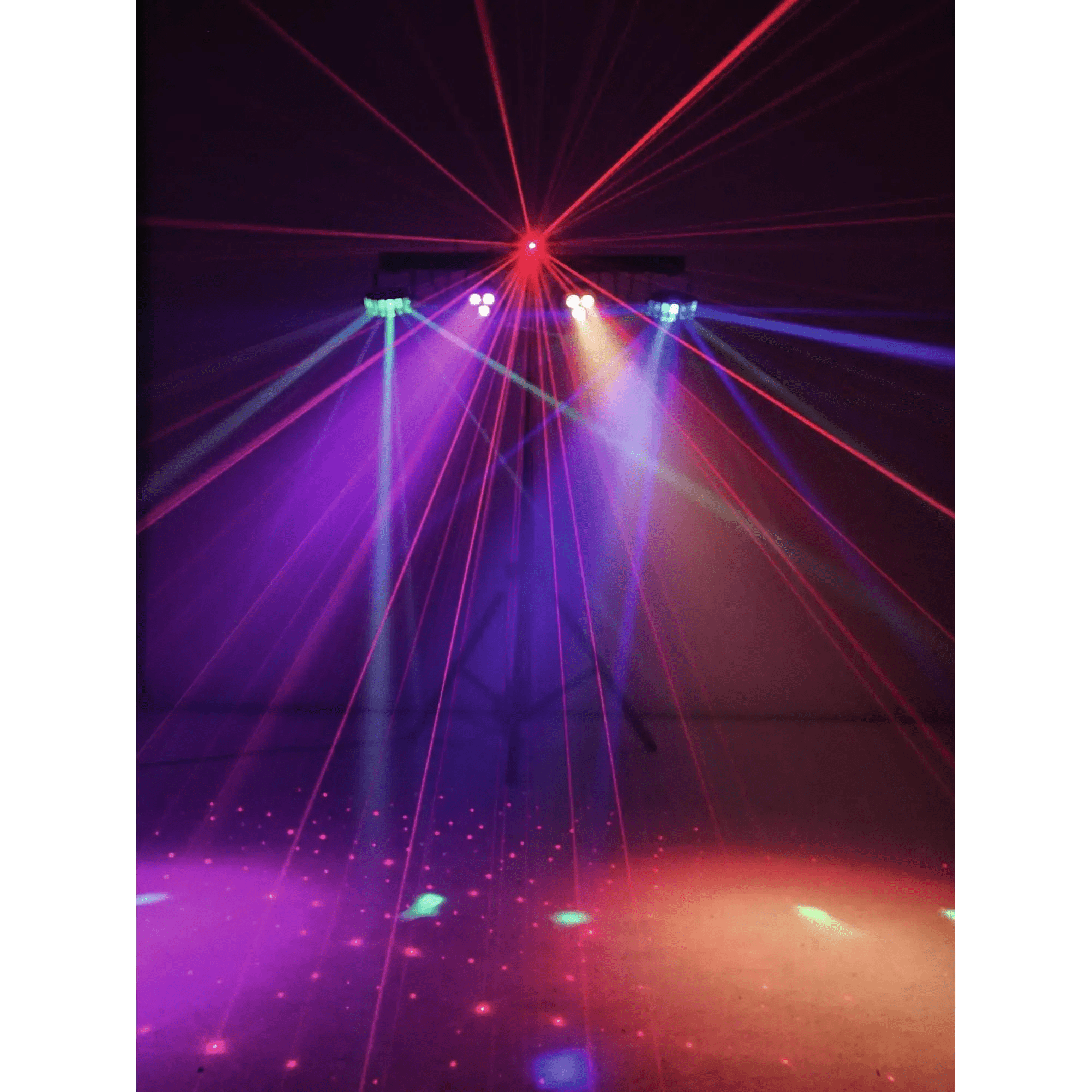 4-in-1-DMX-Lichteffektleiste mit Laser, 2 rotierenden LED-Derbys, 2 LED-Spots & weißen Strobe-LEDs